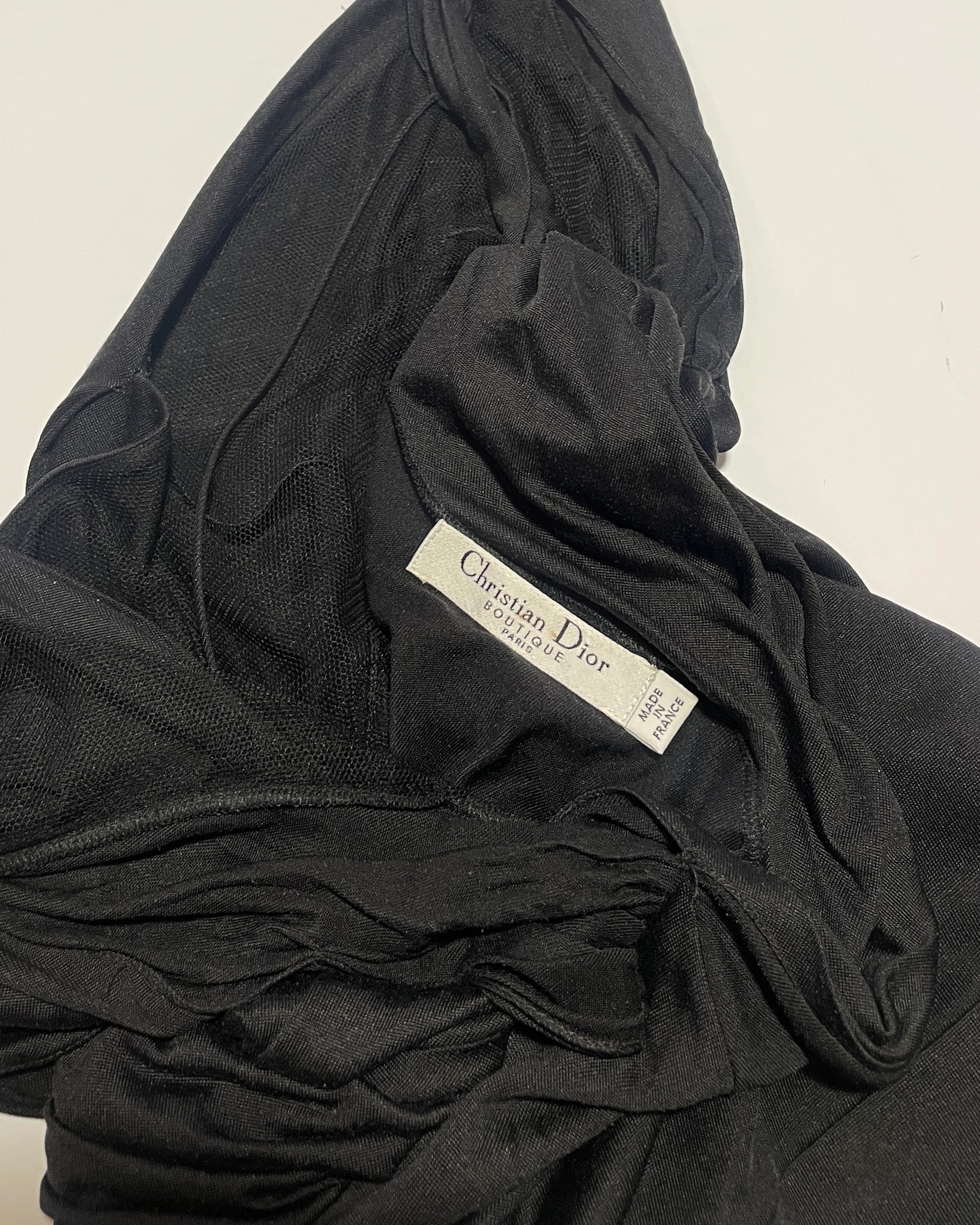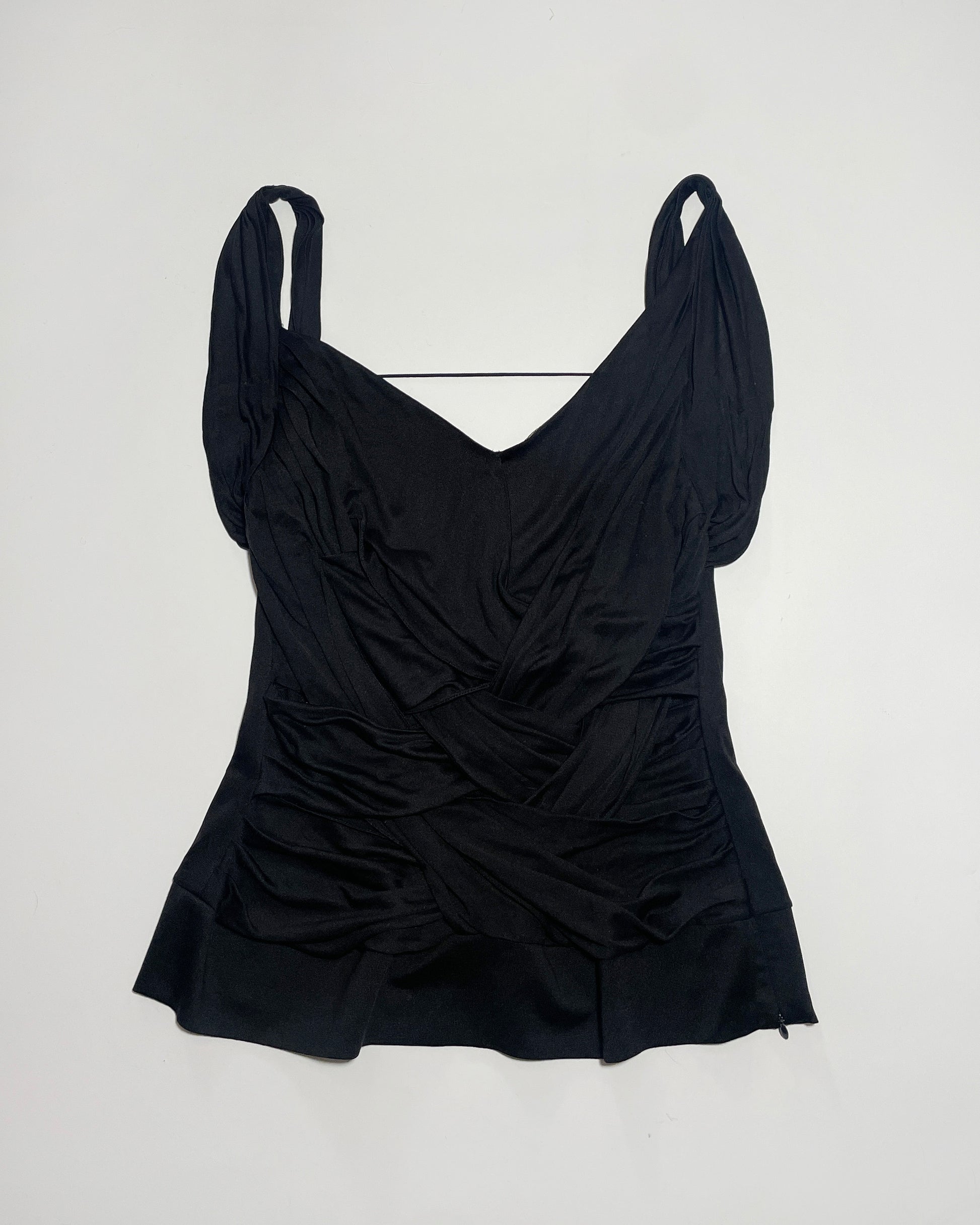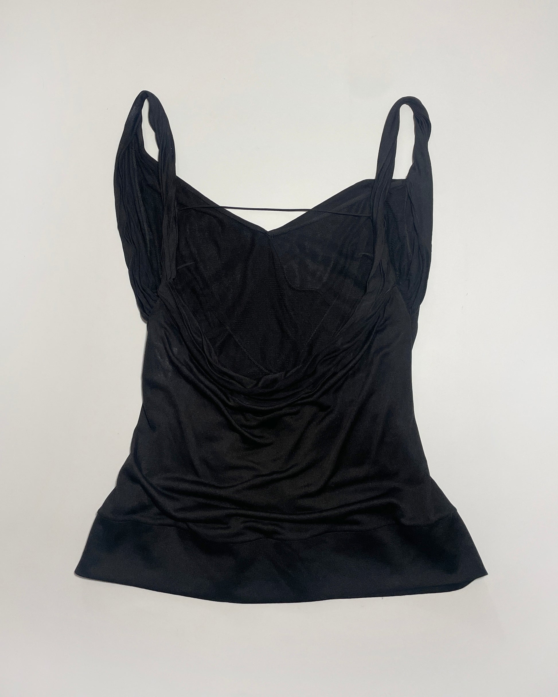 Dior by John Galliano drape top with lace lining and open back.